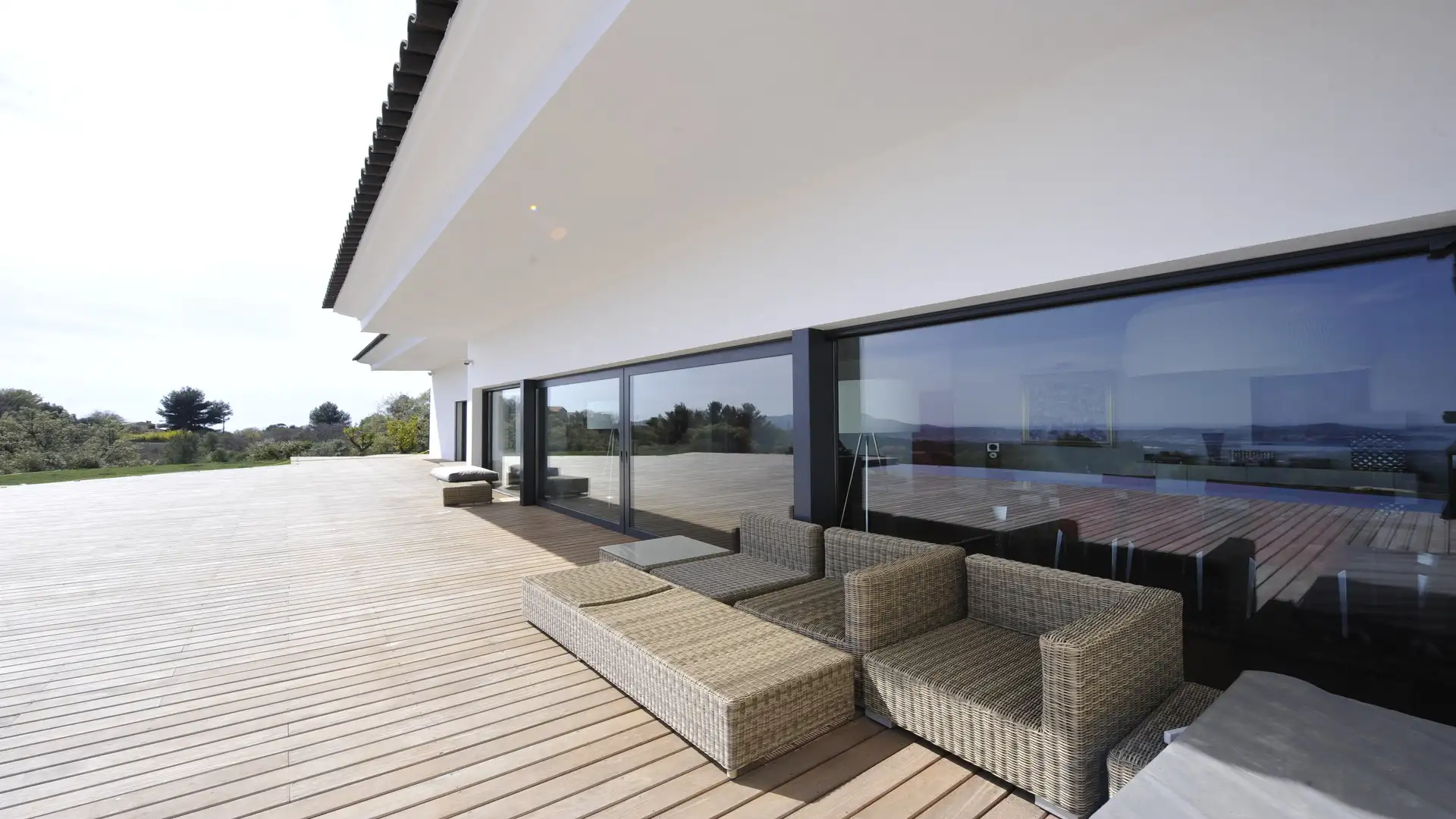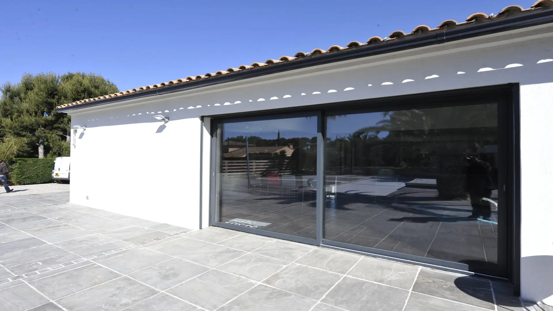 Nos baies vitrées en aluminium, fabriquées à Six-Fours-les-Plages, allient design contemporain et performance technique. Qu’elles soient coulissantes, à galandage ou fixes, elles apportent lumière, clarté et ouverture sur l’extérieur tout en assurant une isolation de haut niveau. Leur structure robuste permet de grandes dimensions sans compromis sur la stabilité ni l'étanchéité. Idéales pour créer une transition fluide entre intérieur et jardin.